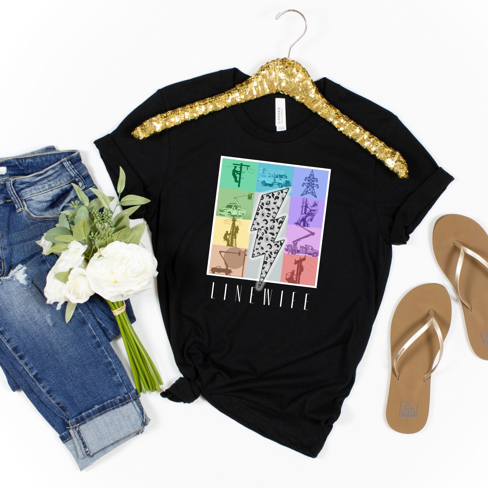 Who doesn't love the look of a concert or band inspired t-shirt? Now you can support your favorite lineman by rocking this "Linewife Era Tour" shirt!