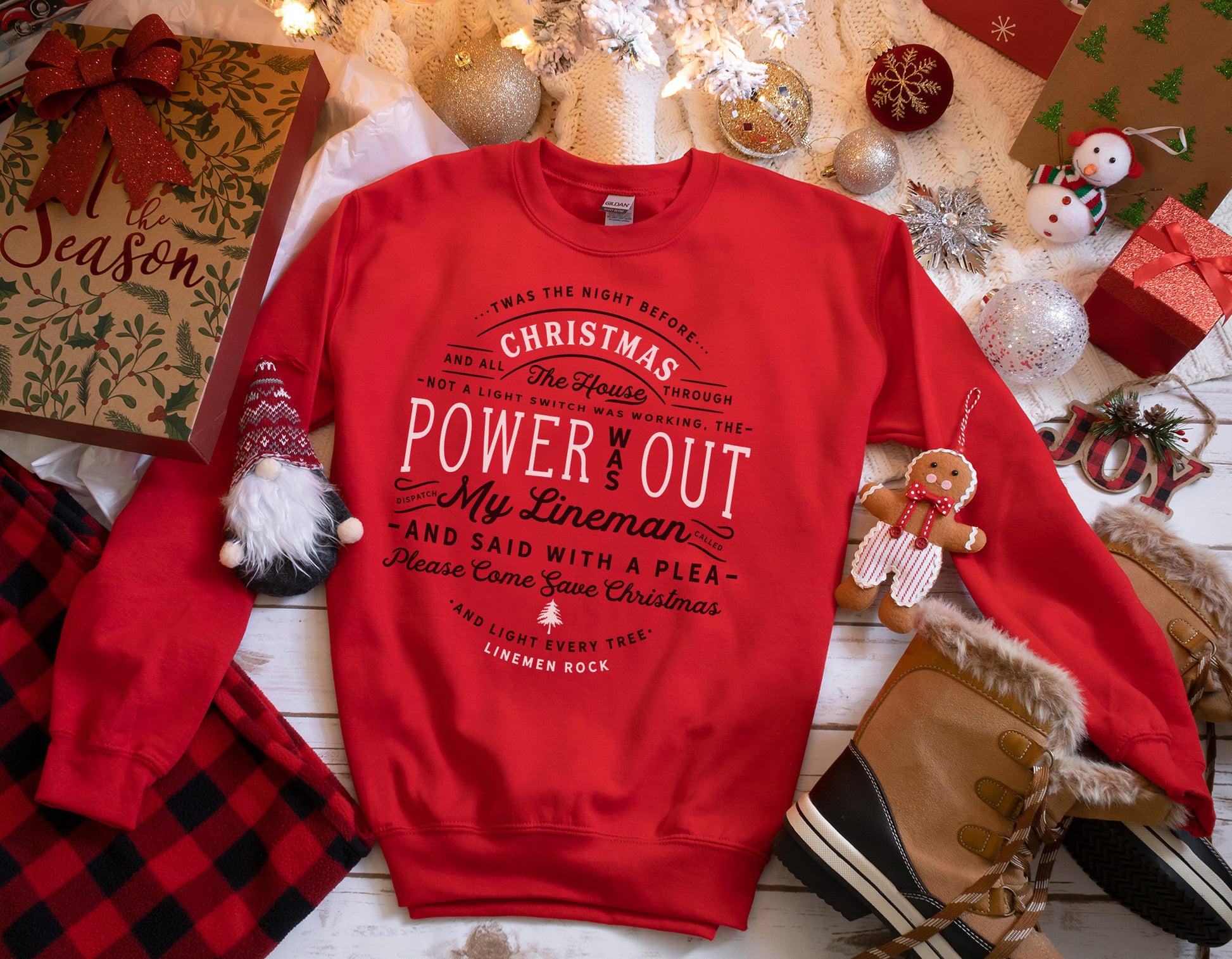 Twas the Night Before Christmas lineman crewneck